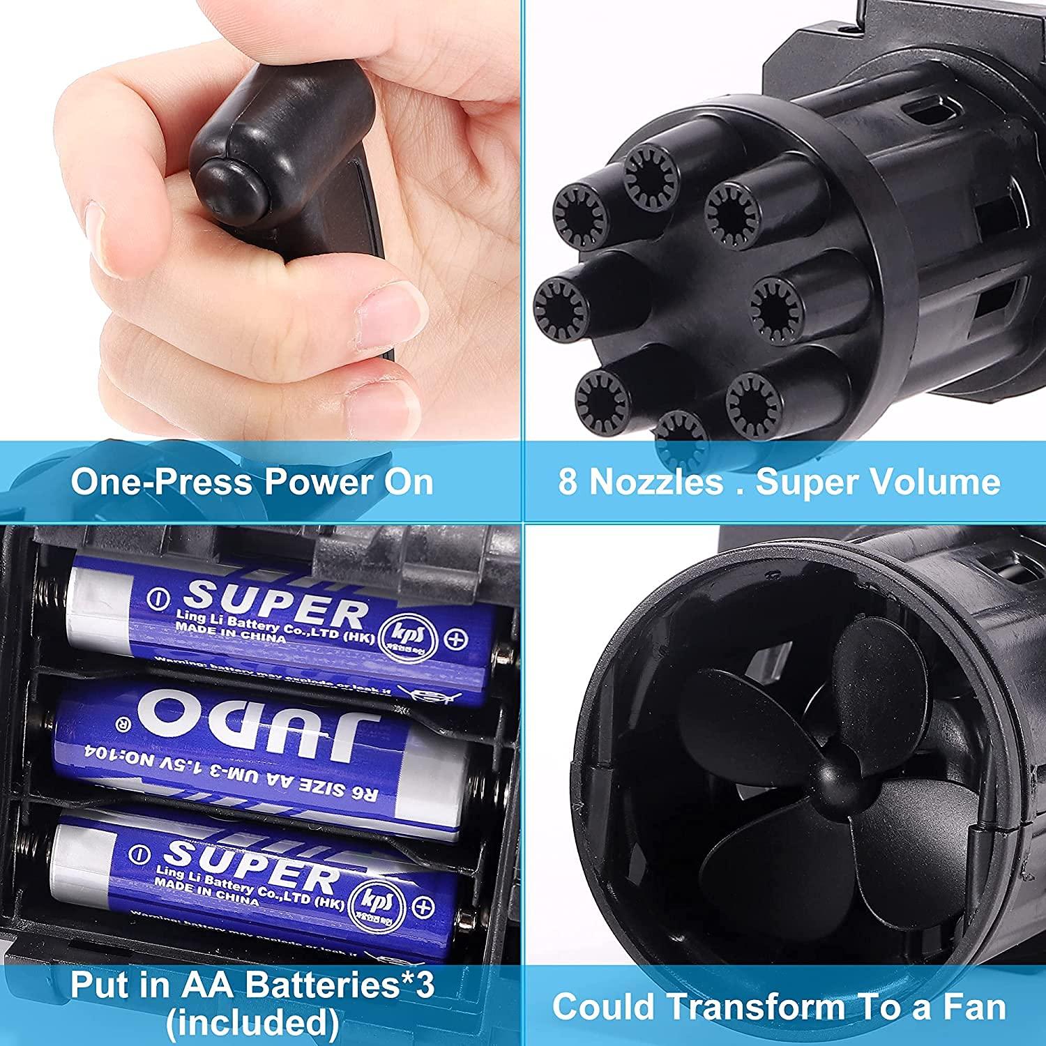 Bubble Gun- 8 Hole Automatic Gatling Bubble Gun Blower Maker, with 3 Batteries and Bubble Water